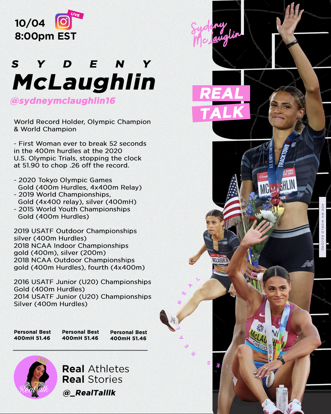Tiara Williams Real Talk Podcast Podcast Host, Track & Field Personality, and Content Creator Instagram @_realtallk Graphics